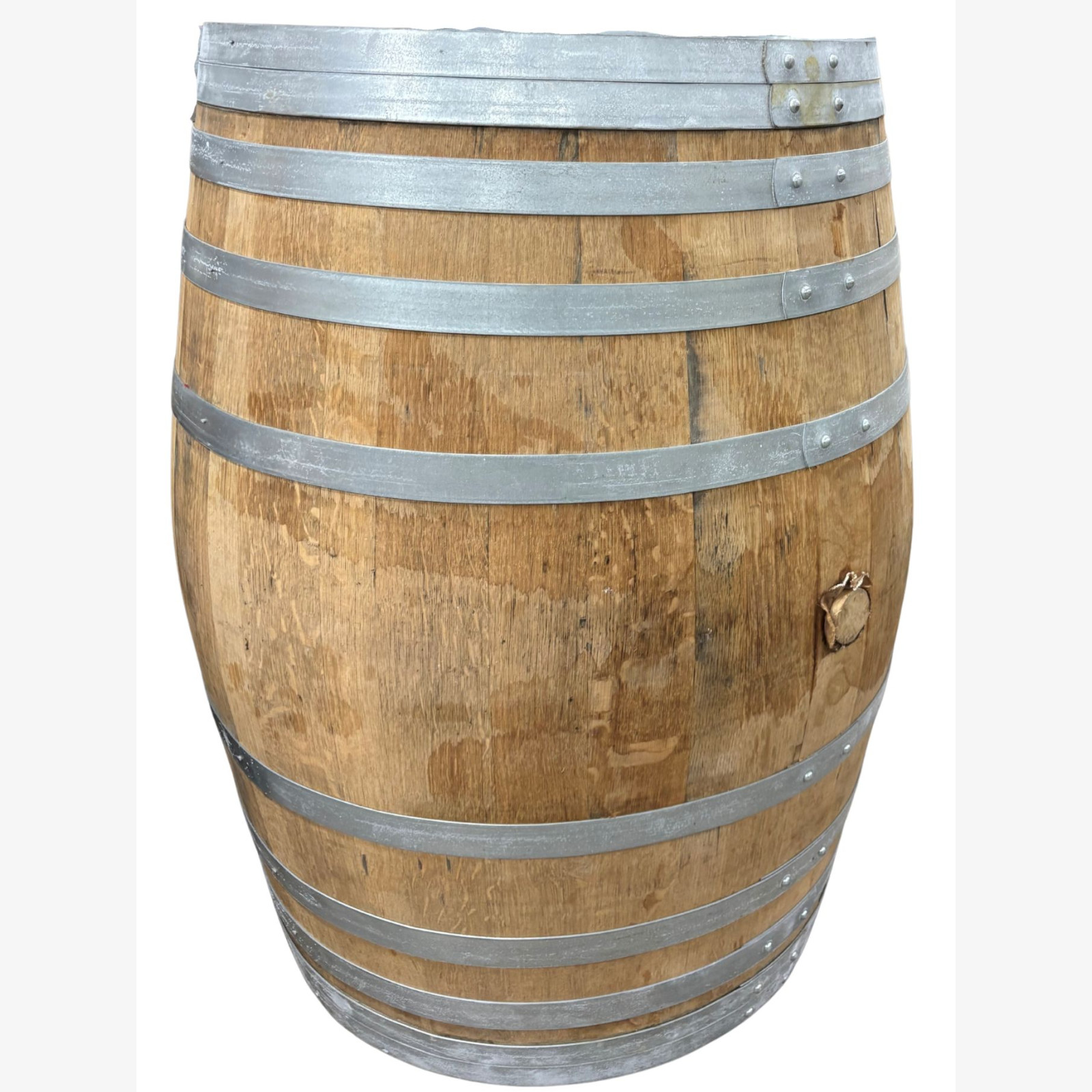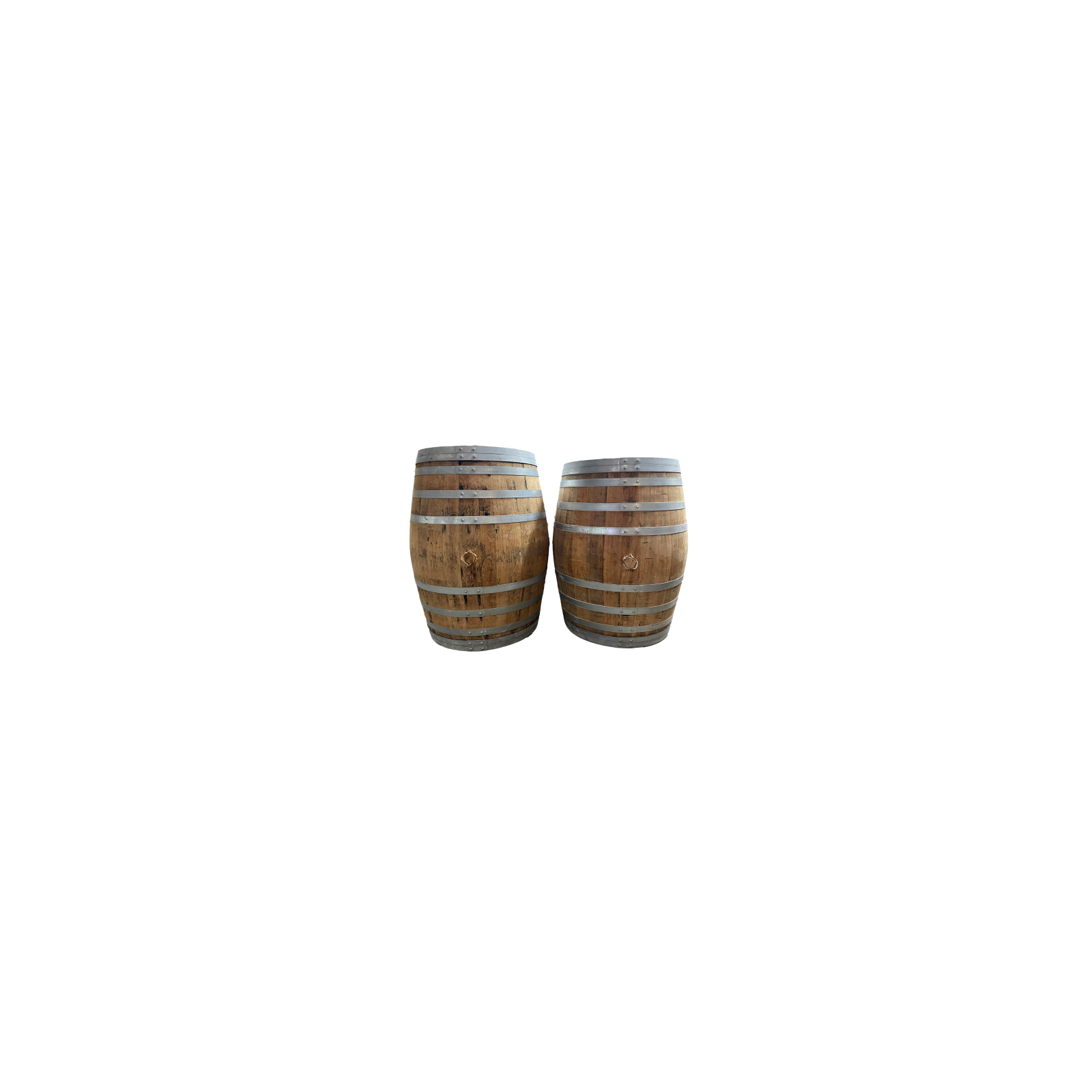 Second-hand wine barrel 225L in French oak for decoration only with galvanised hoops, 3 - 5 years old, deliverd with silicon bung.